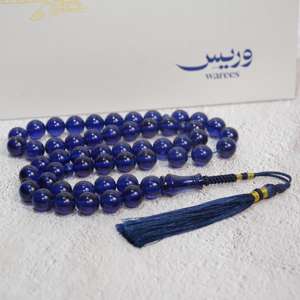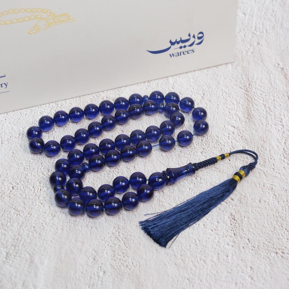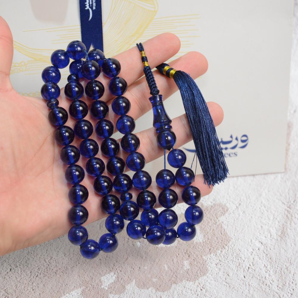 مسبحة زعفرانية مصنوعة من خامة إيرانية راقية، تفوح منها رائحة الزعفران العطرية عند الاستخدام، وتتميز بلون أزرق ملكي جذاب شفاف وملمس حريري ناعم. تضفي شكة تفصال متناسقة لمسة من الفخامة والجمال، لتكتمل بها أناقة هذه السبحة .