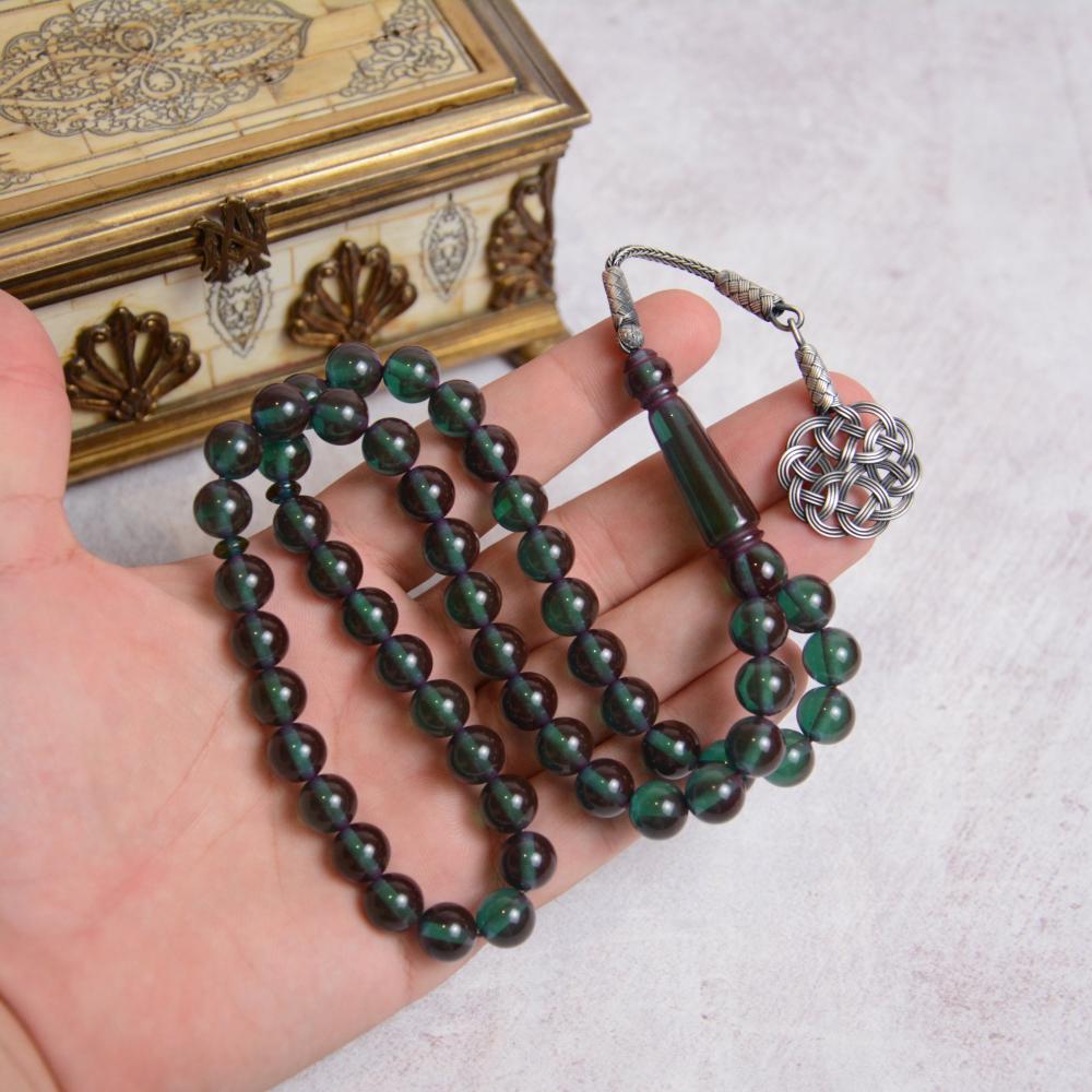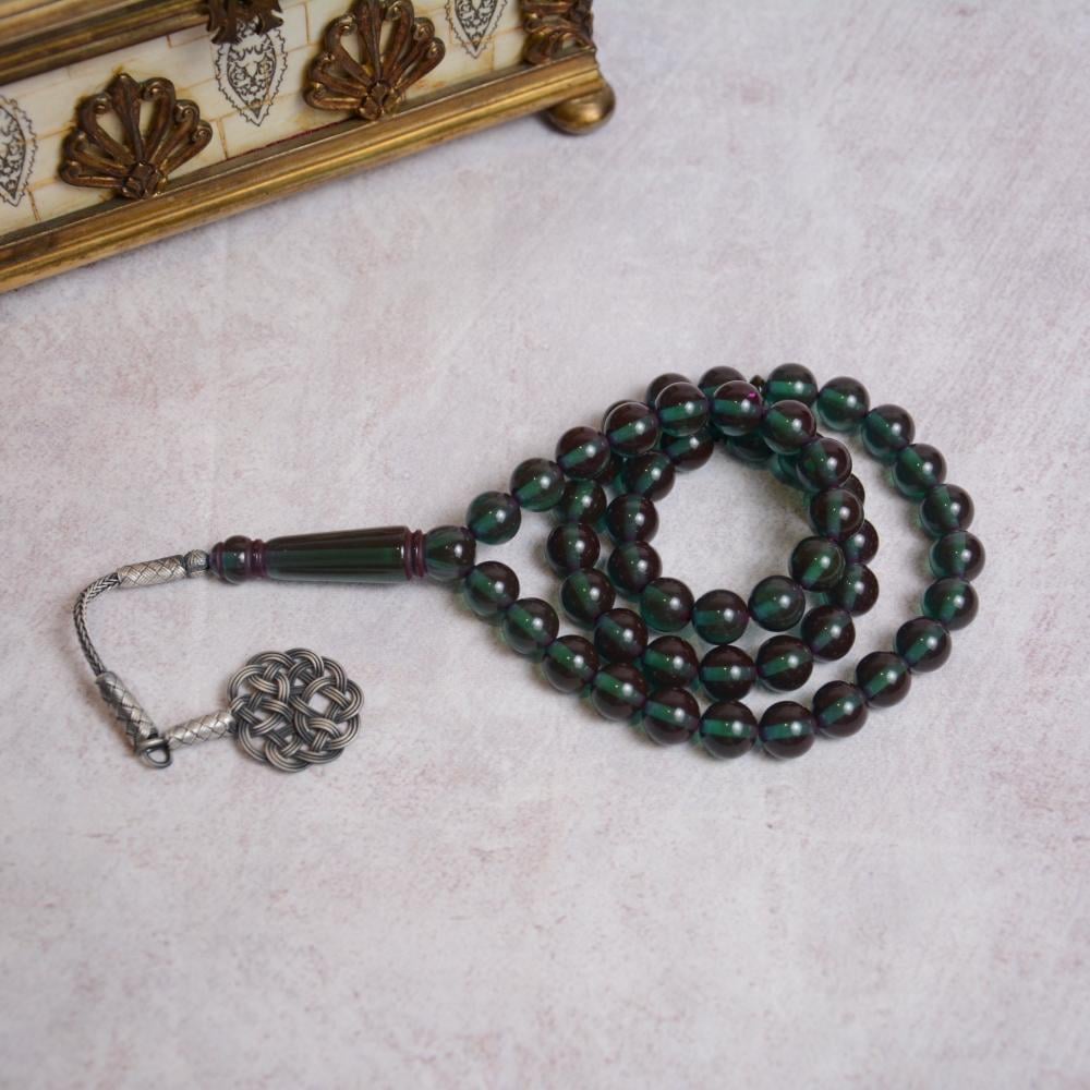 سبحة مميزة بلون أخضر زمردي بشفافية.