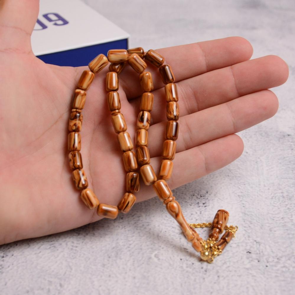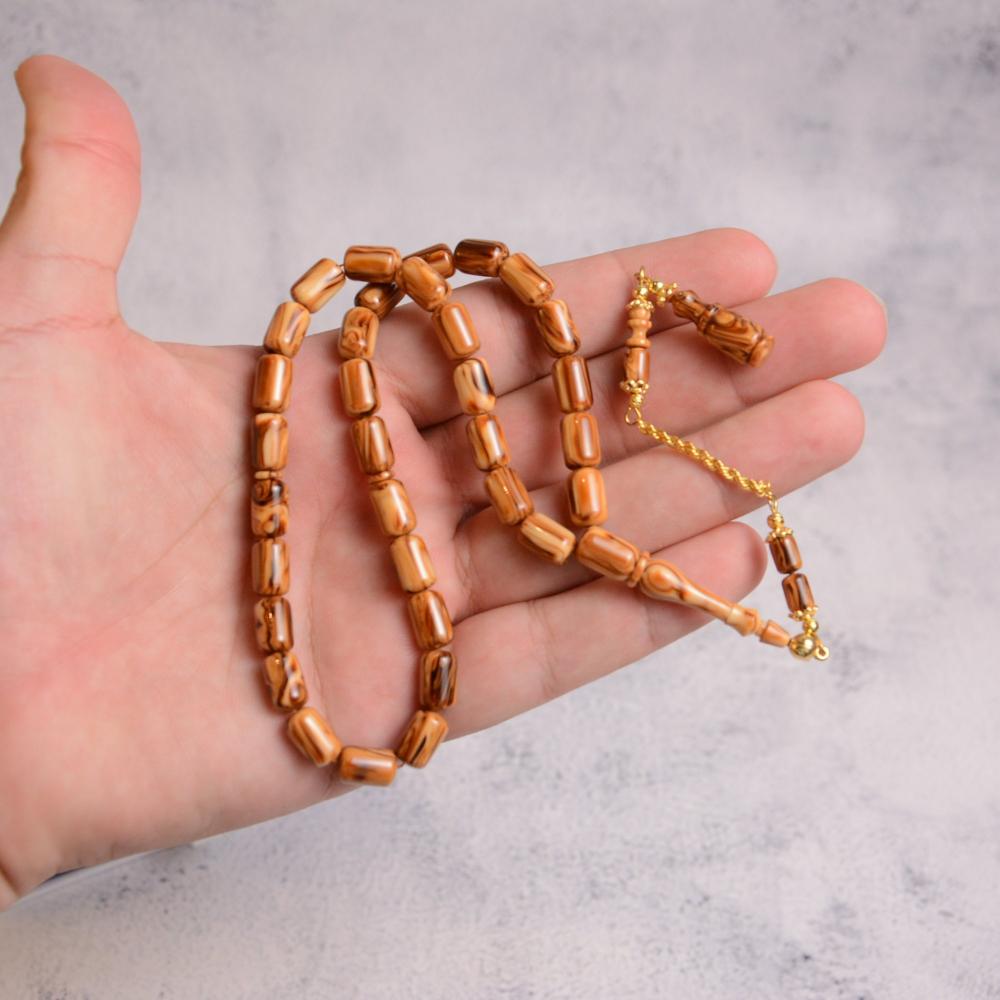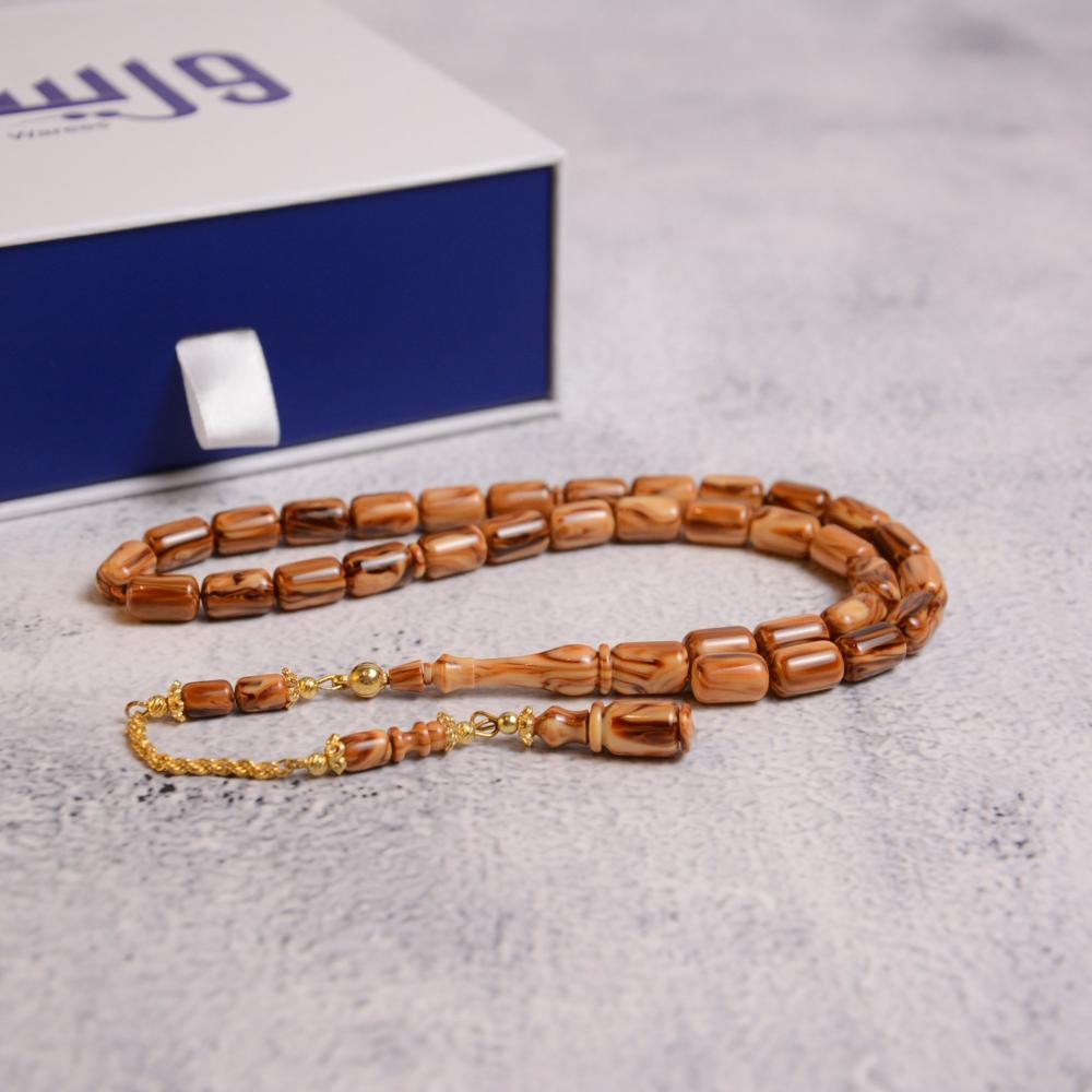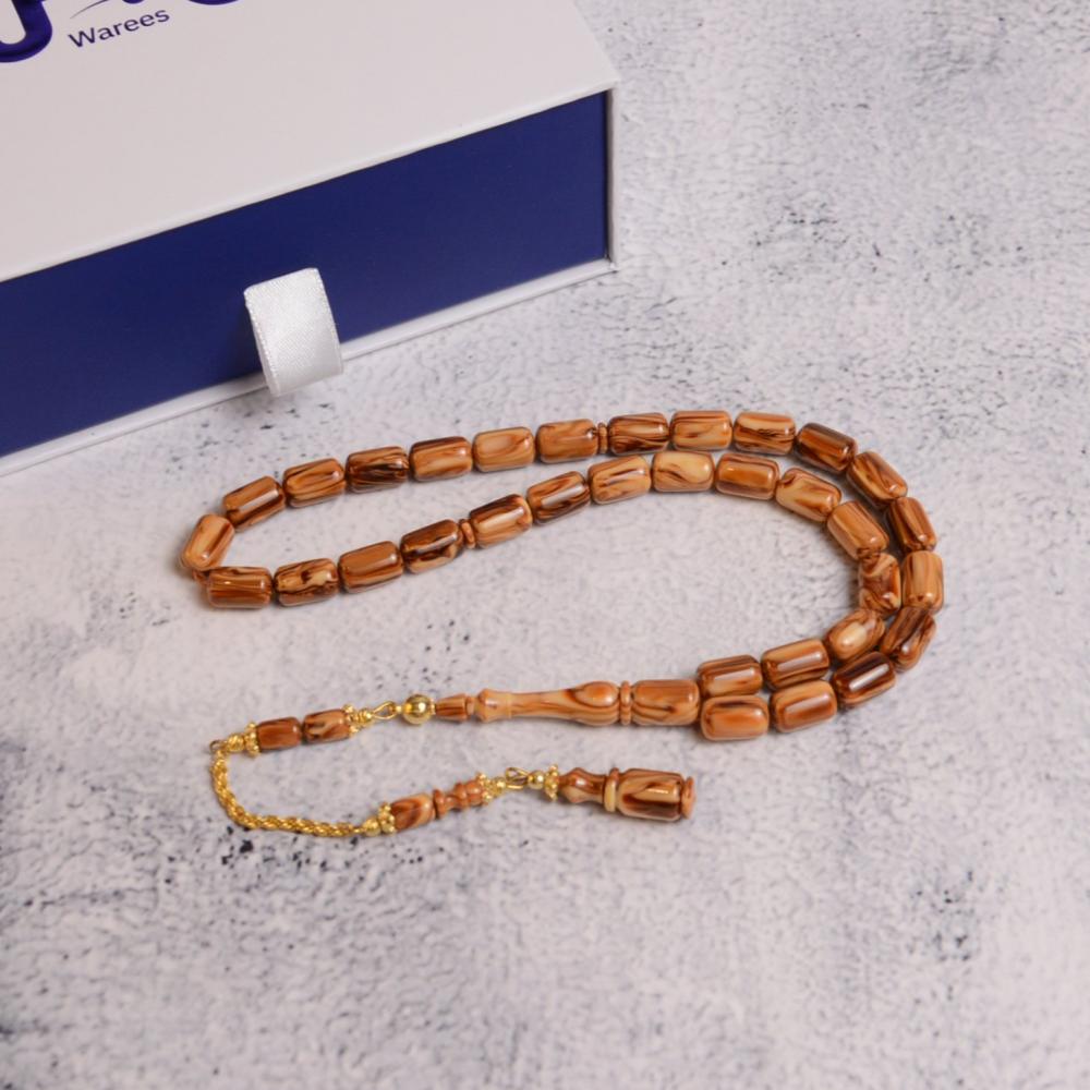 سبحة فريدة جدا بجمال لونها دارسيني مخروطة من عصا ألمانية قديمة يتجاوز عمرها 70 سنة , بلون وتعريقات يصعب تكرارها قمة في الجمال, مع كركوشة مطلية بماء الذهب عيار ١٤