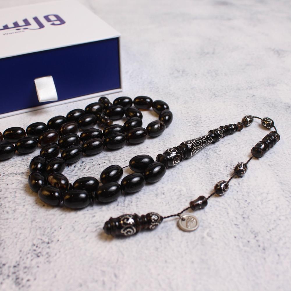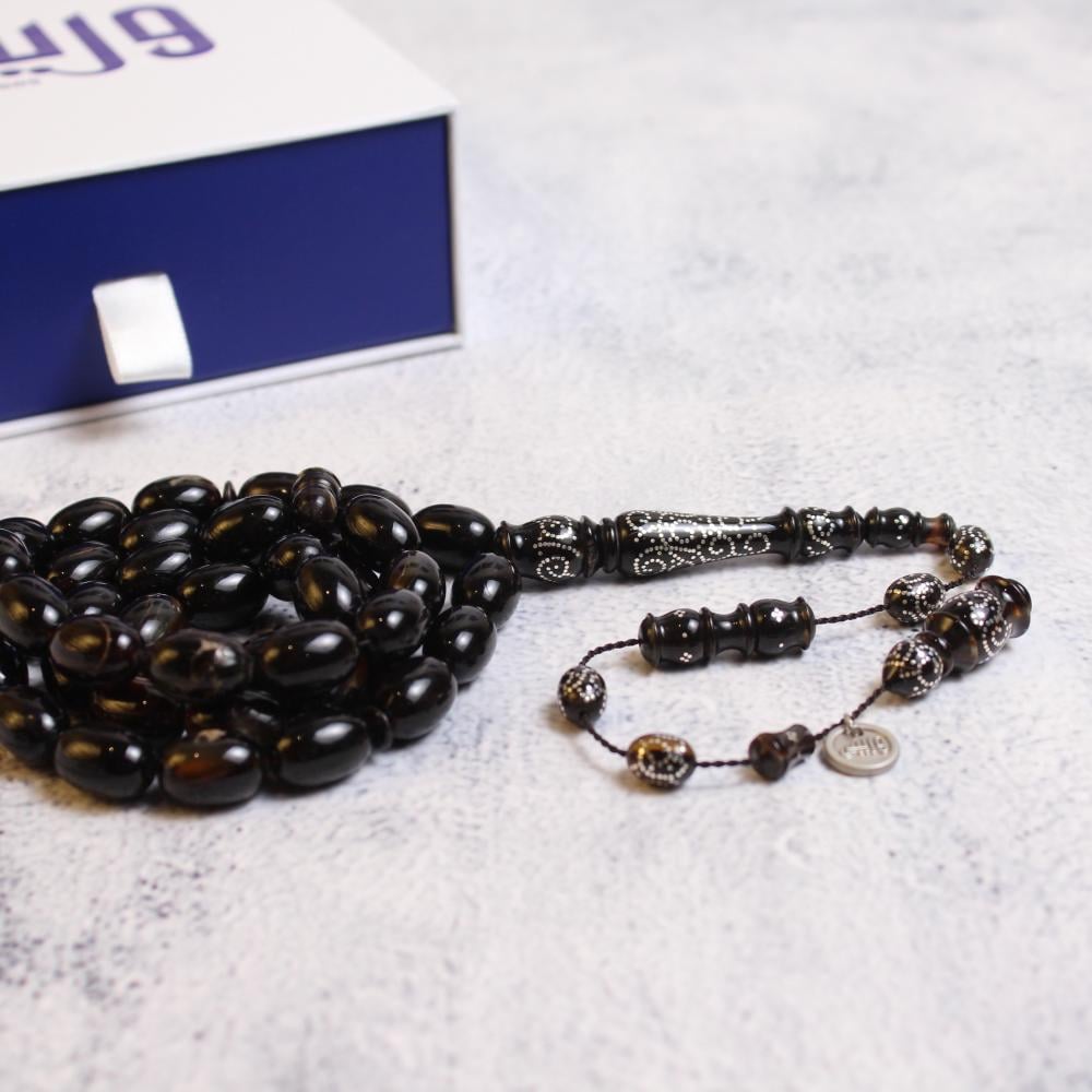 دائما ماتكون السبح الطبيعية برونق وجمال يصعب الابتعاد عنه. تأتيكم سبحة ظهر السلحفاة ( ترسه ) مع شاهد منقوش باحترافية عالية من الفضة عيار ١٠٠٠