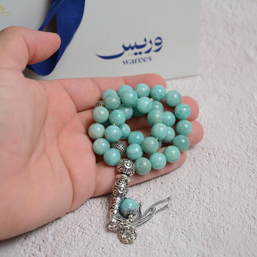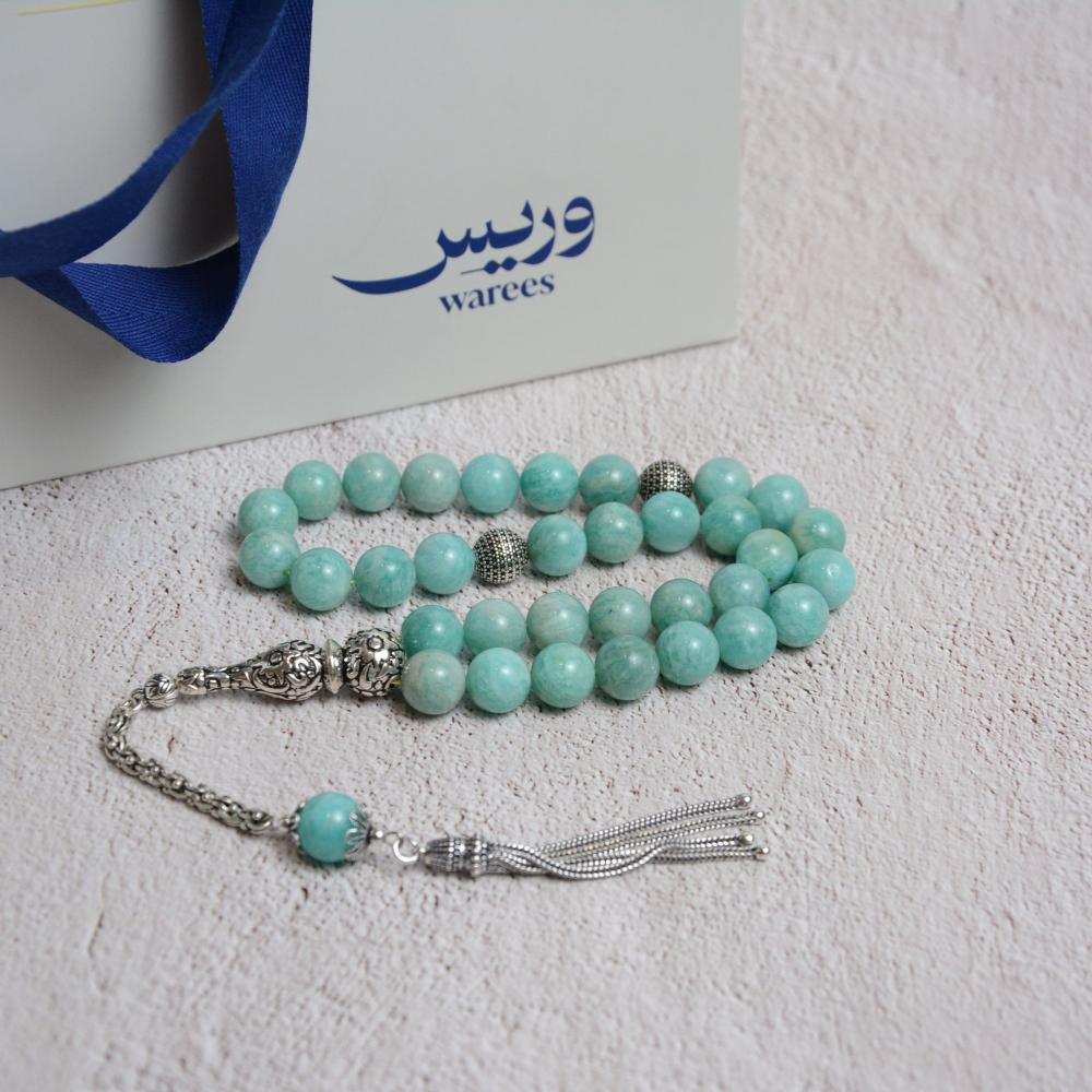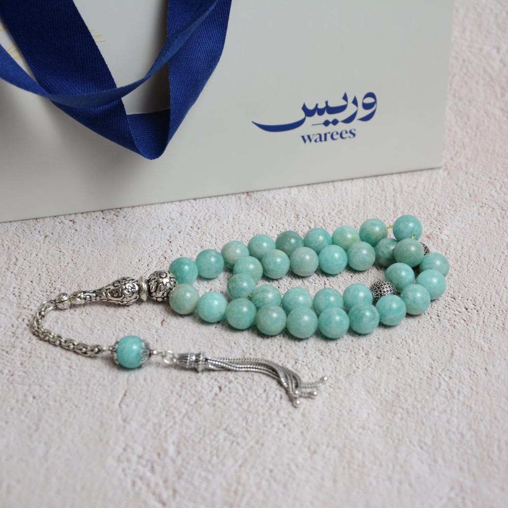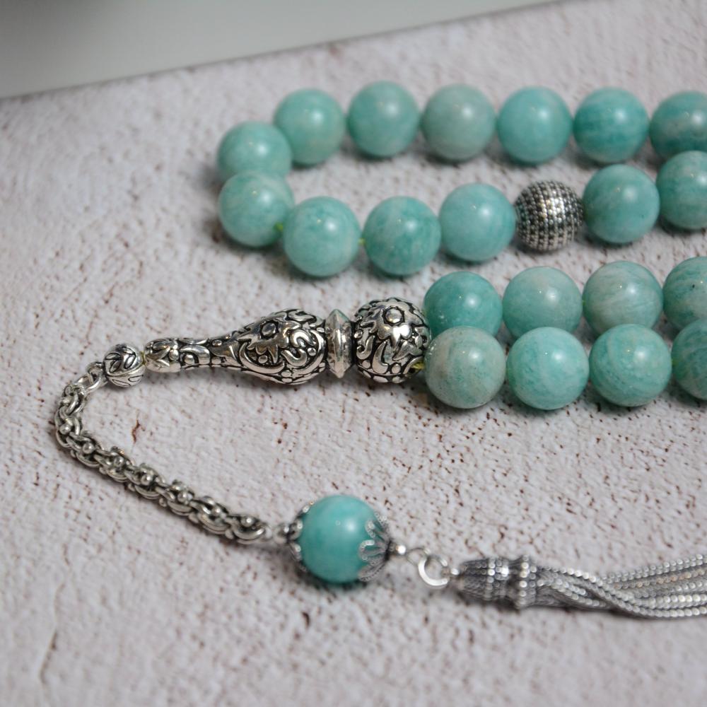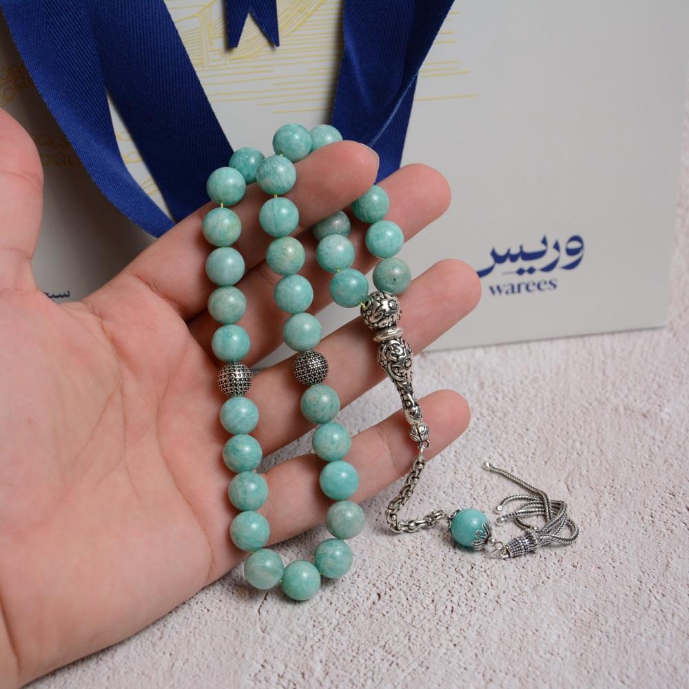 سبحة حجر أمازونيت مع كركوشة فضية عيار 925