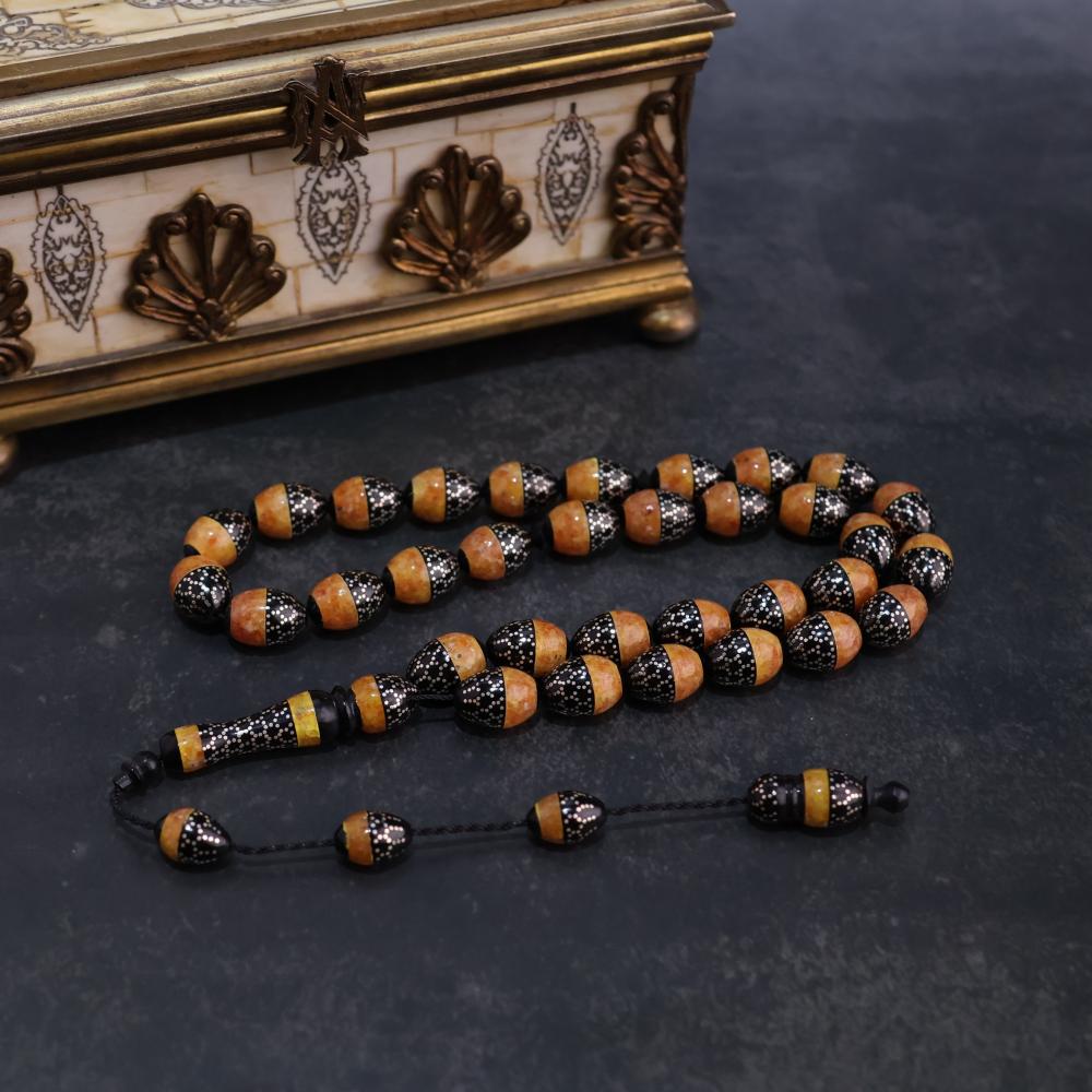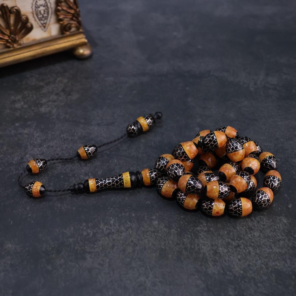 سبحة كوك مطعم بالفضة عيار ١٠٠٠ وكسر من الكهرمان الأصفر المميز