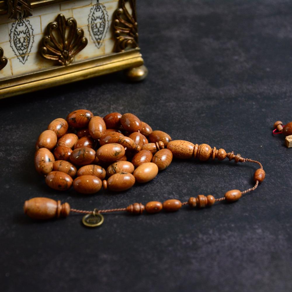 سبحة من عاج ناب الماموث المنقرض بلون بني مع تشخيطات طبيعية ساحرة.