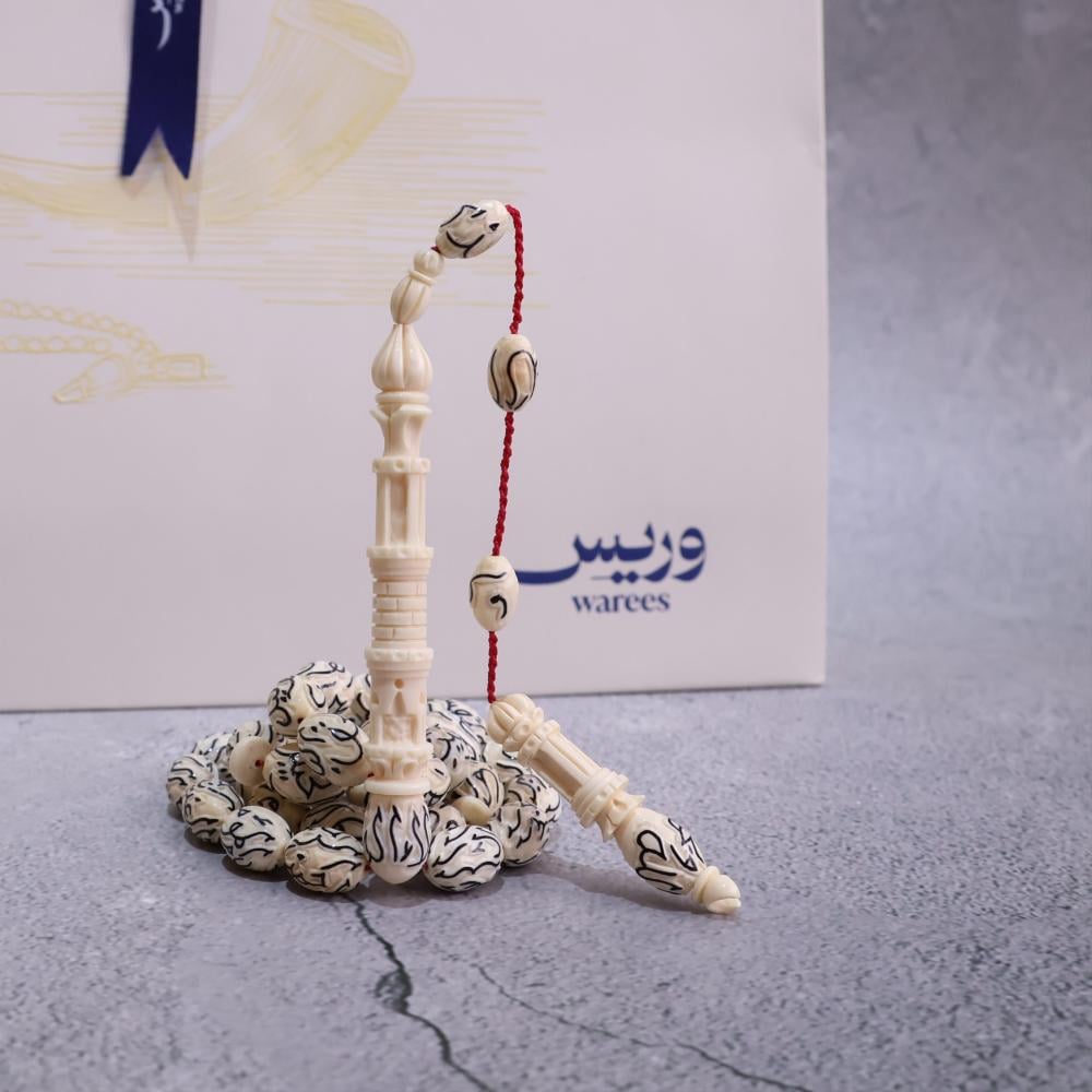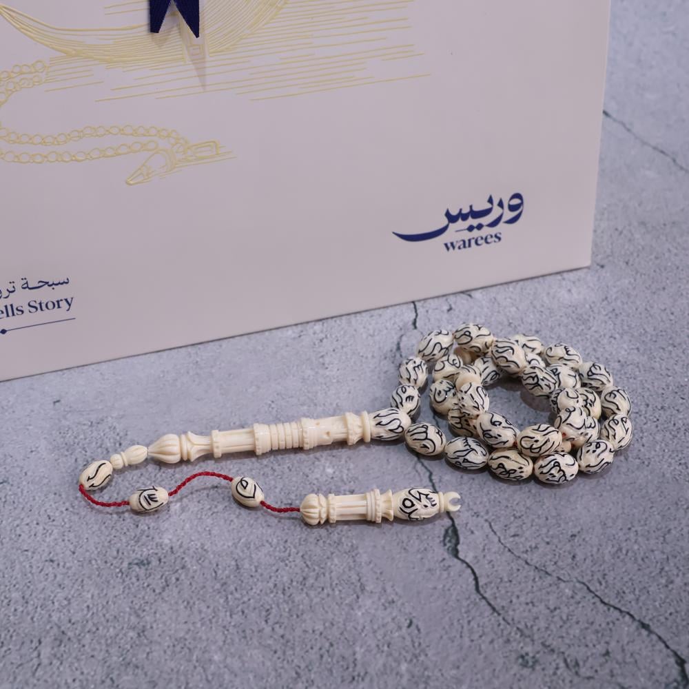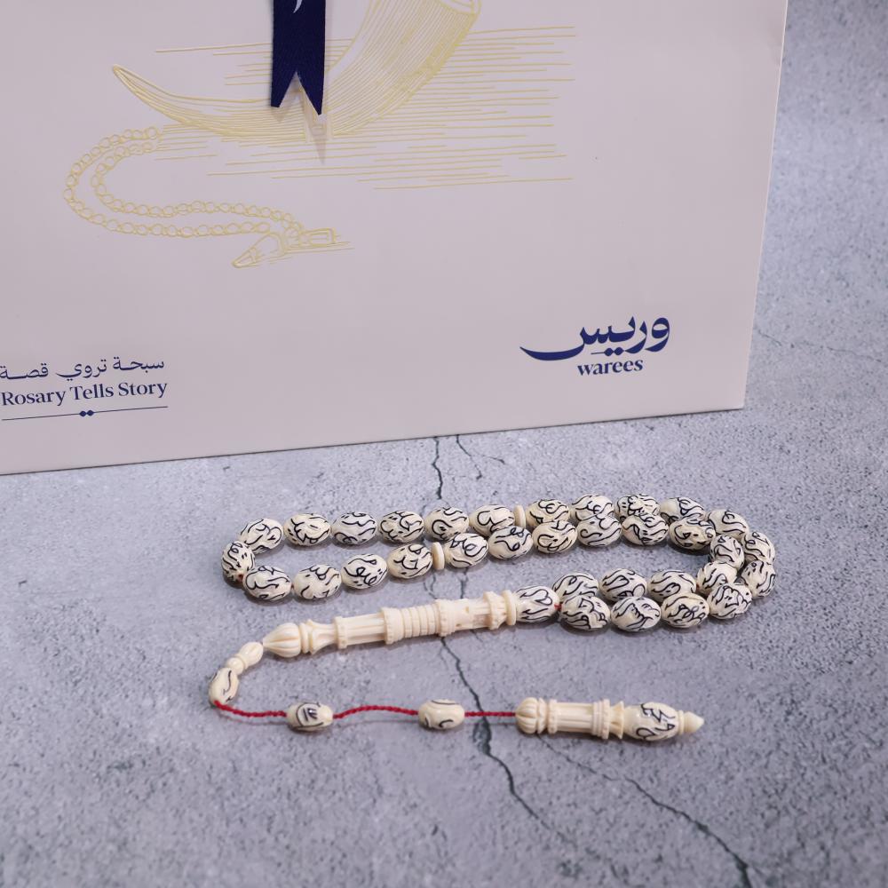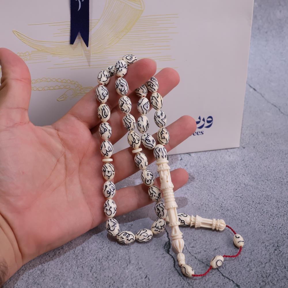 سبحة فاخرة من عاج الفيل منحوتة يدويًا ومزخرفة بأسماء الله الحسنى