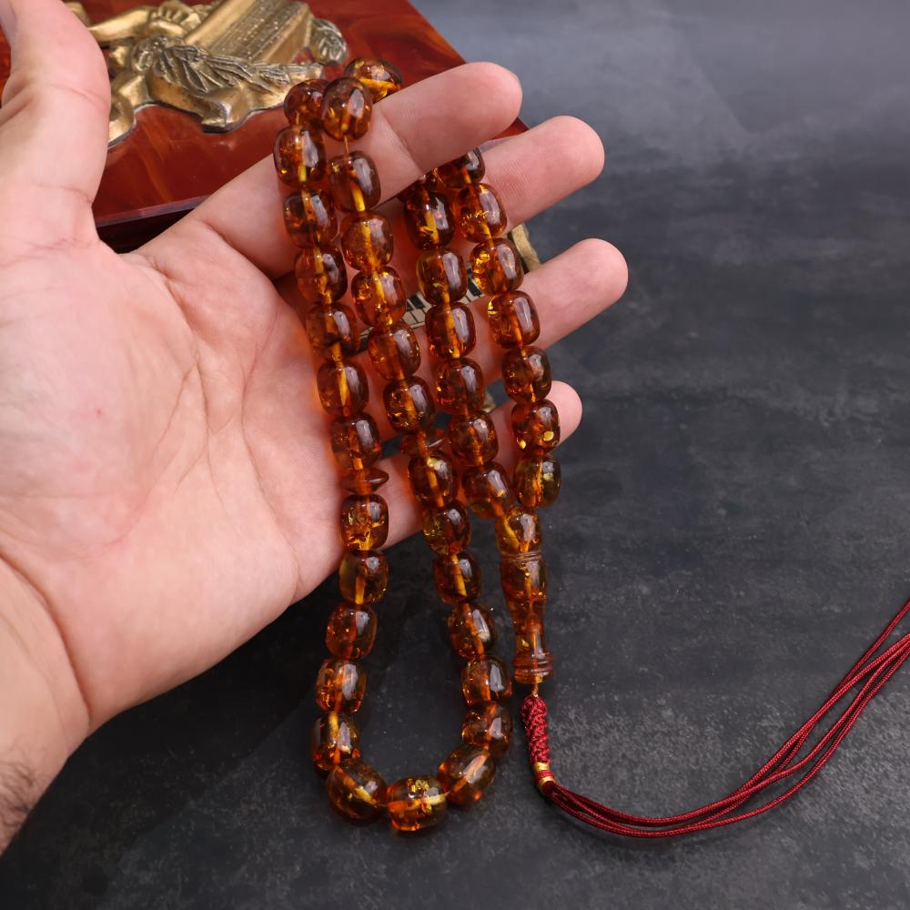 من أعماق الطبيعة وكنوزها النادرة، تأتيك هذه السبحة المصنوعة من كهرمان روسي طبيعي، أحد أندر وأجمل أنواع الكهرمان الذي يقدّره عشاق التحف والسبح الفاخرة. بلونٍ ذهبي مائل للعسلي ولمعةٍ طبيعية آسرة، تضيف لمسة من الفخامة والتميّز لكل من يقتنيها.