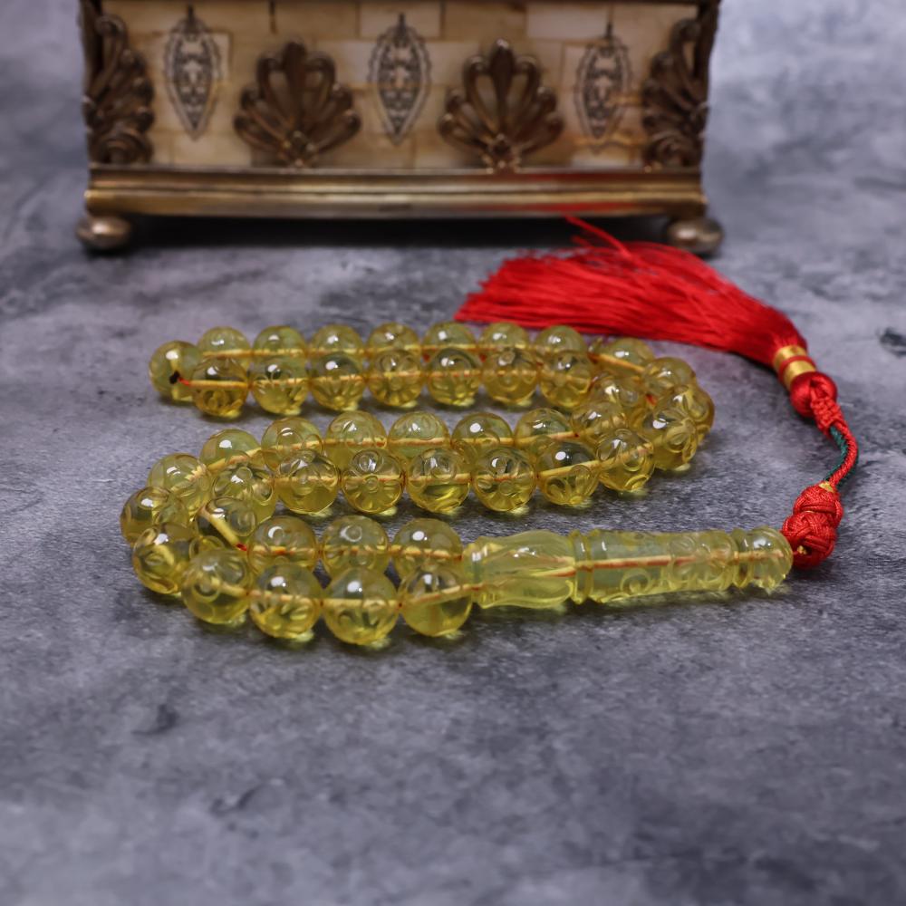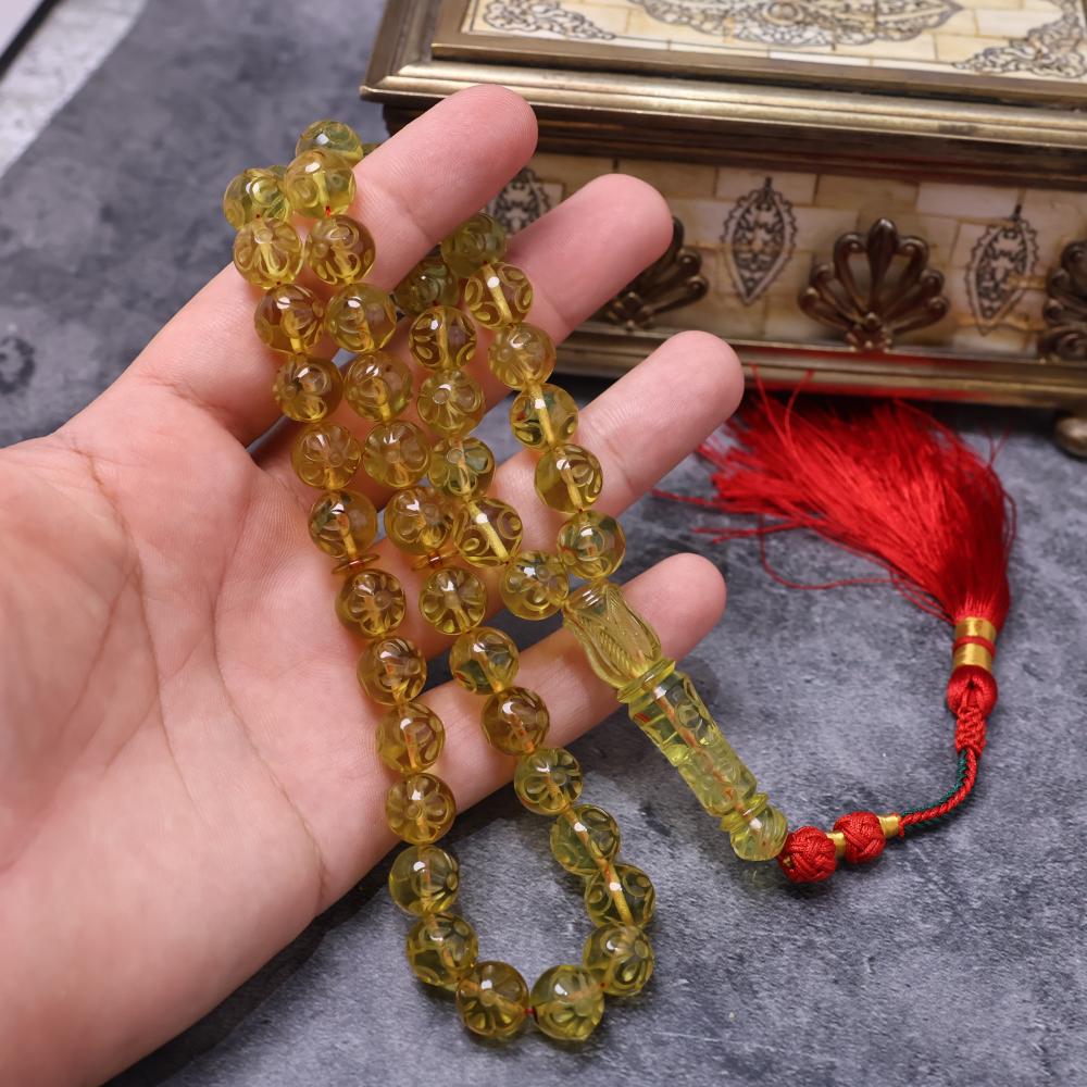 من قلب الطبيعة وسحرها الخالد، تأتيك هذه السبحة المصنوعة من كهرمان مكسيكي أصيل، يتميز بنقوش فنية دقيقة على كل خرزة تضفي عليها طابعًا فريدًا من الأناقة والتميّز. بلونٍ ذهبي مشرق ولمعة شفافة آسرة، فهي خيار يجمع بين الفخامة والذوق الرفيع لعشاق السبح النادرة.