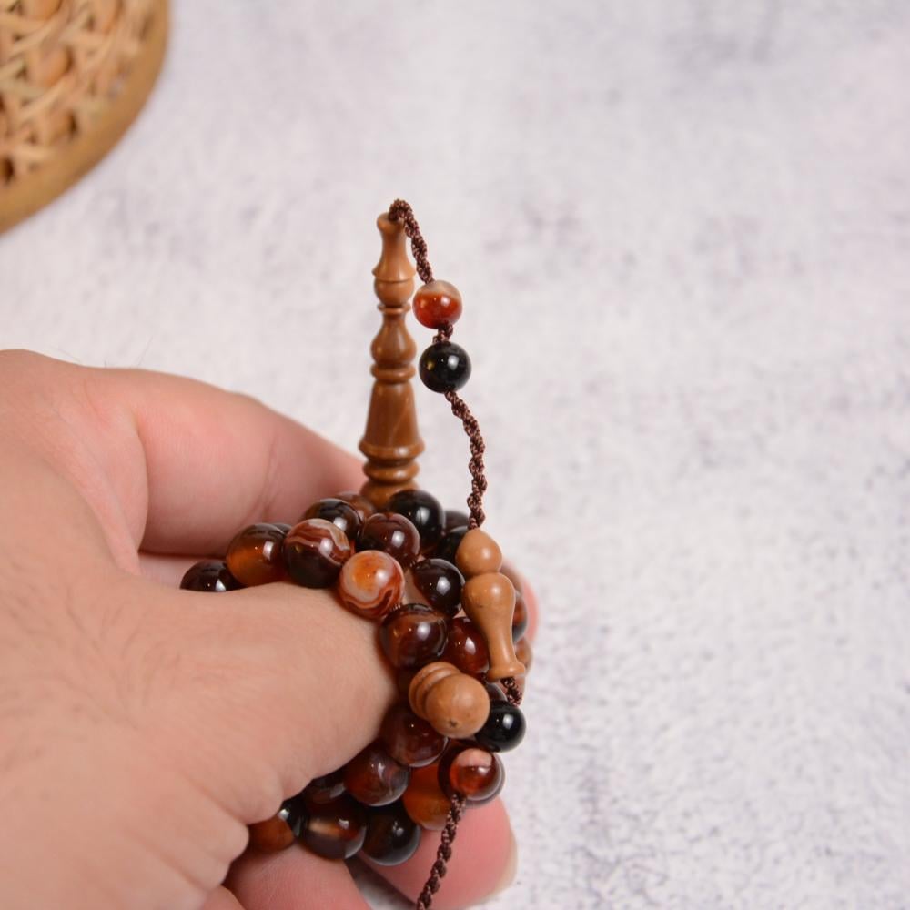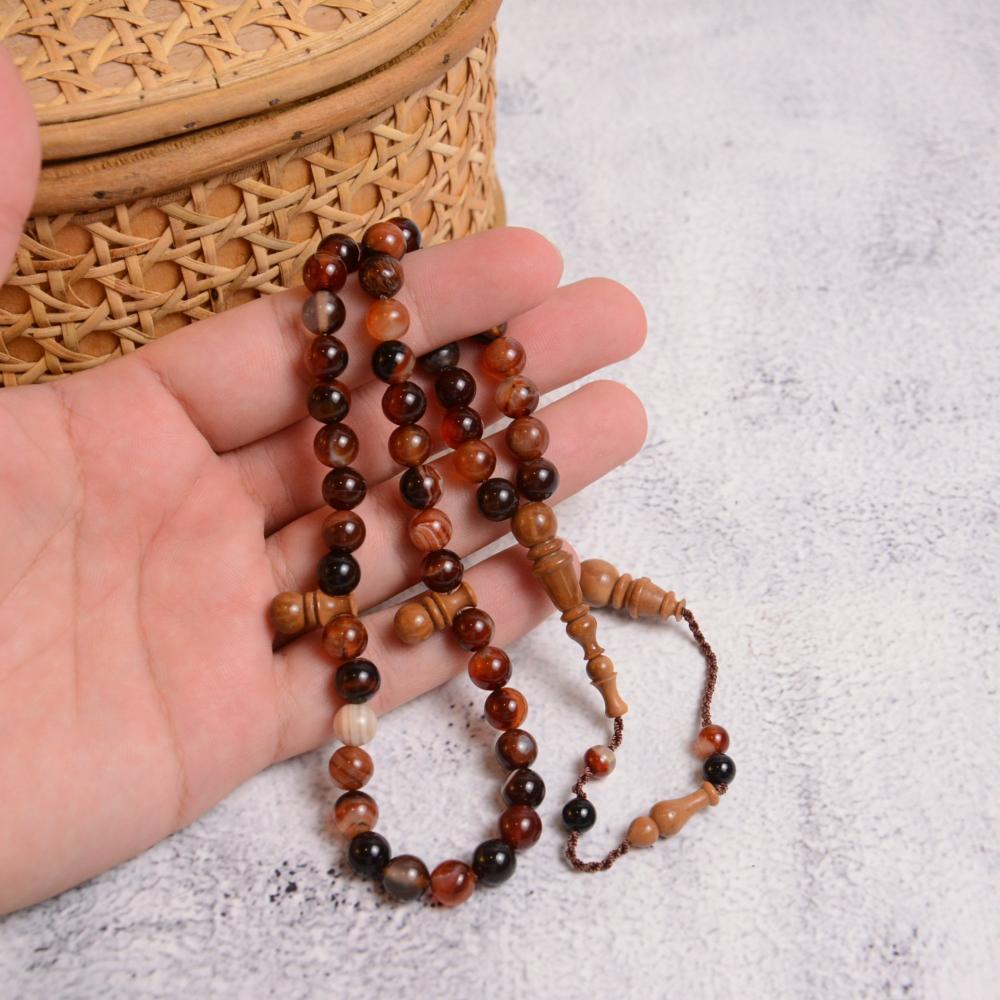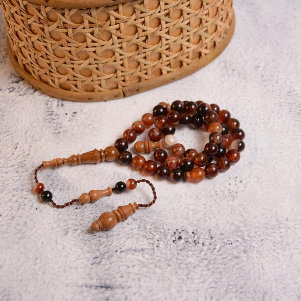 سبحة حجر العقيق الكريم مع شاهد وفواصل من خشب الكوك البرازيلي