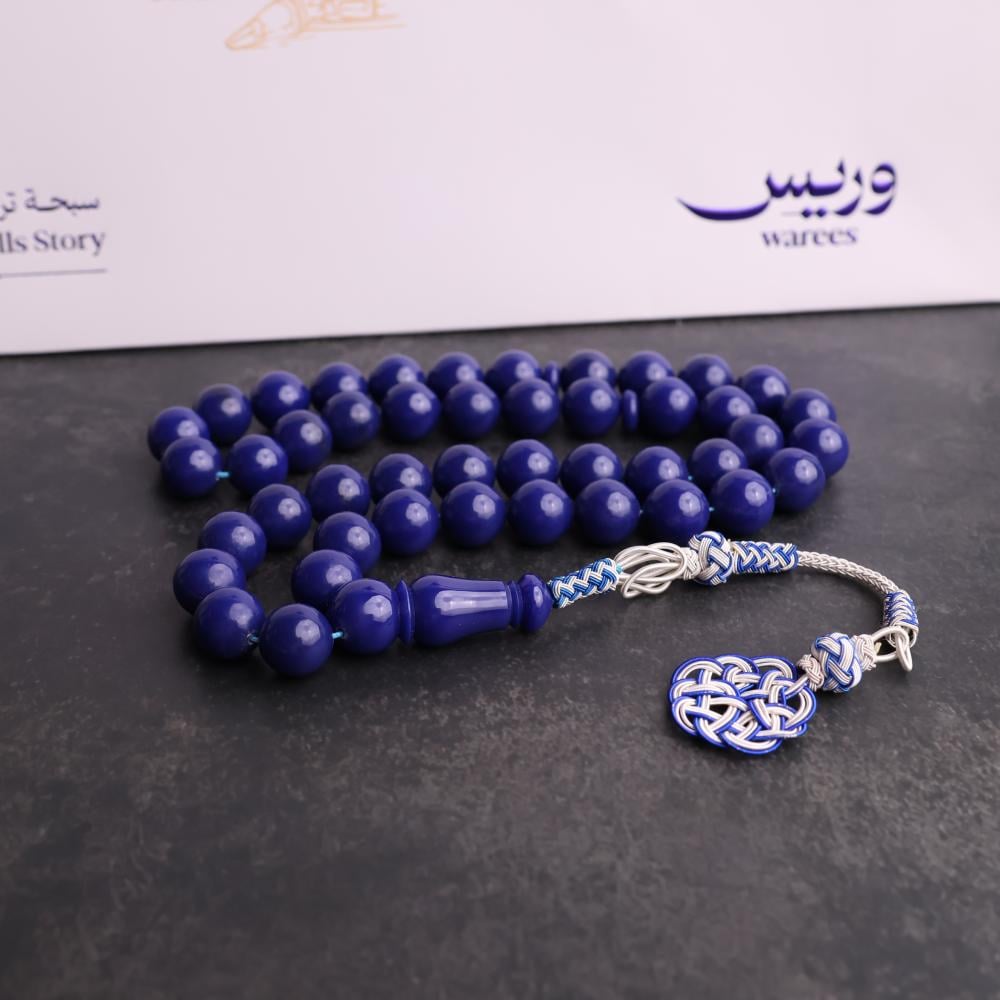 هذه السبحة مصنوعة من مادة الفاتوران التركي المميزة بلونها الكحلي ، بتصميم طرابزونة تقليدي جذّاب وتفاصيل دقيقة تعكس براعة الصناعة اليدوية.