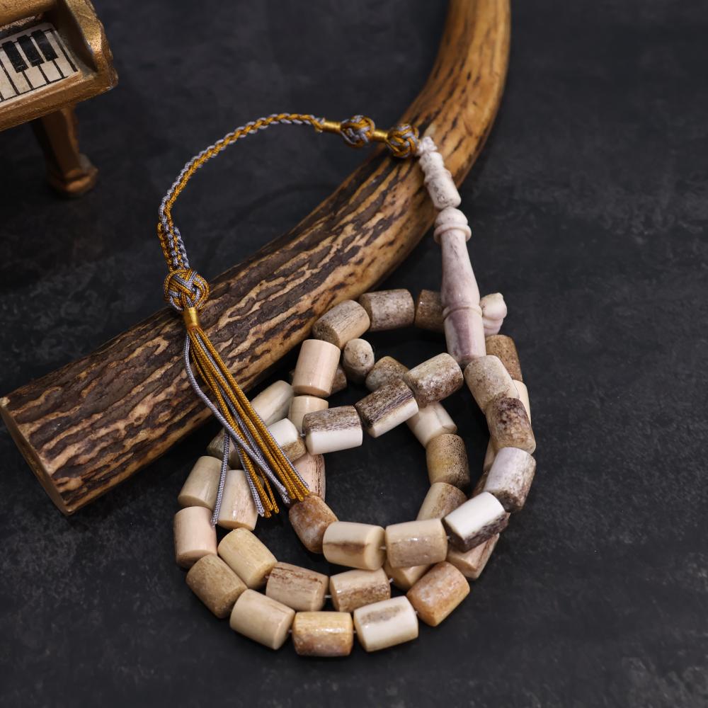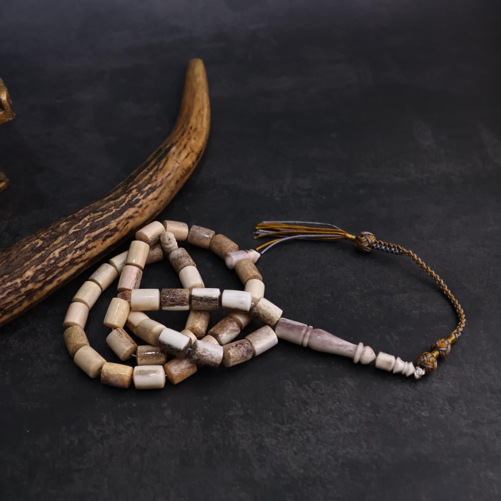 مسباح من قرن الغزال ( الأيل الأوربي ) تتميز بجمالها الطبيعي والأنيق. يتميز مسباح قرن الغزال باللون البني الفاتح والظلال الداكنة، ويتميز بنقوش طبيعية وجذابة.يتميز القرن الغزال بأنه مادة متوسطة الوزن ومتينة، تم خراطتها بدقة عالية.