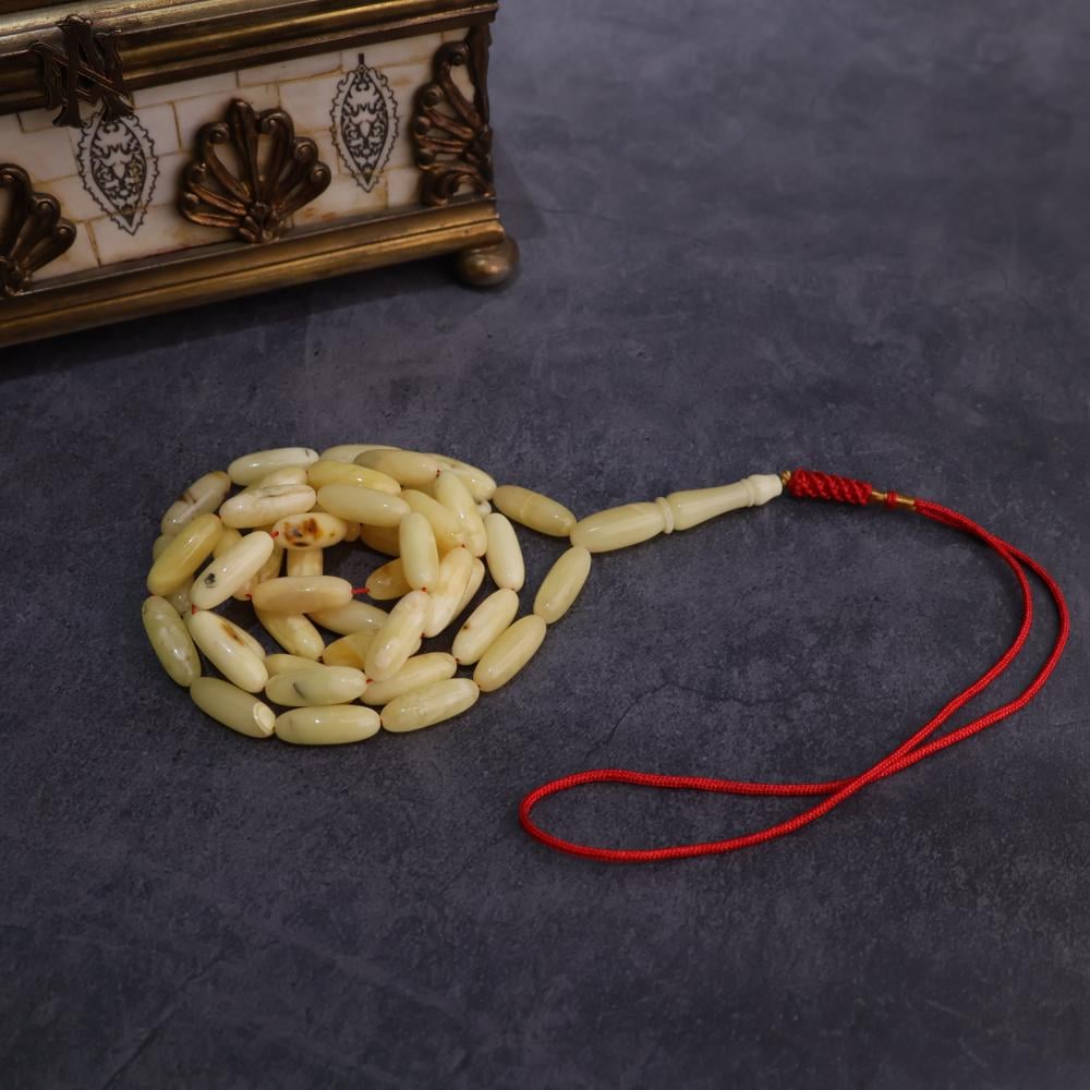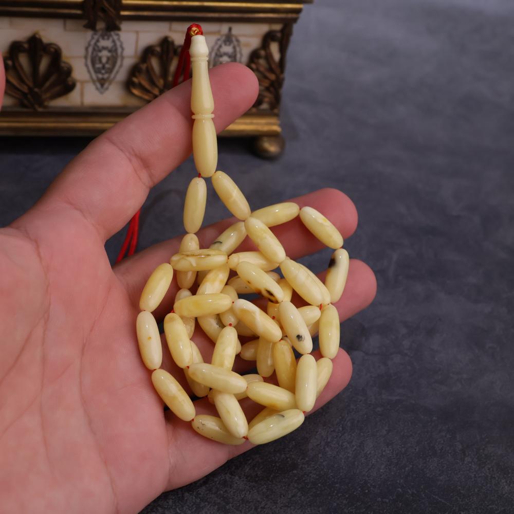 نقدم لك تحفة فريدة من "وريس" – سبحة من كهرمان كلينغيرادي الطبيعي، بتدرجات صنوبريّة بشوائب طبيعية تُبرز المادة ولمعانها الهادئ . تم تشكيل الخرز بقصة بيضاوية مستطيلة (صنوبري)، تمنح السبحة سلاسة في الحركة وملمسًا ناعمًا يعكس الجودة والذوق الرفيع.