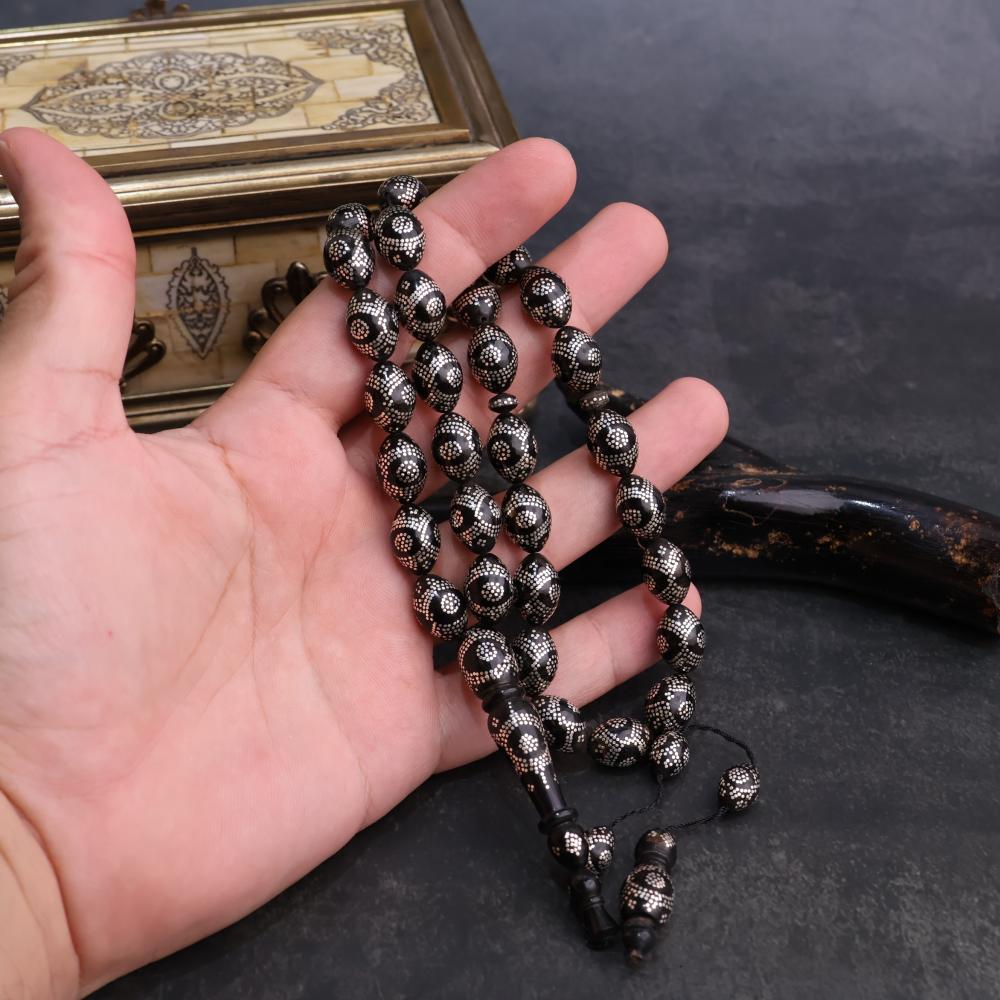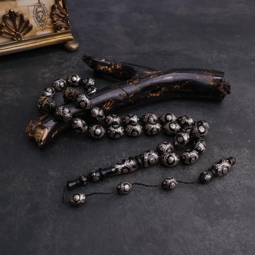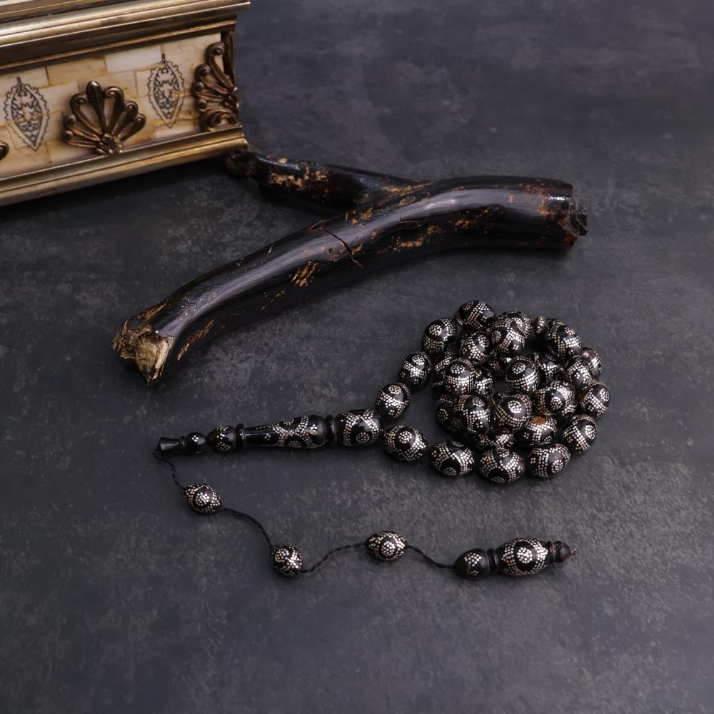 سبحة اليسر ( المرجان الأسود الطبيعي ) من البحر الأحمر مطعم بالفضة عيار ١٠٠٠