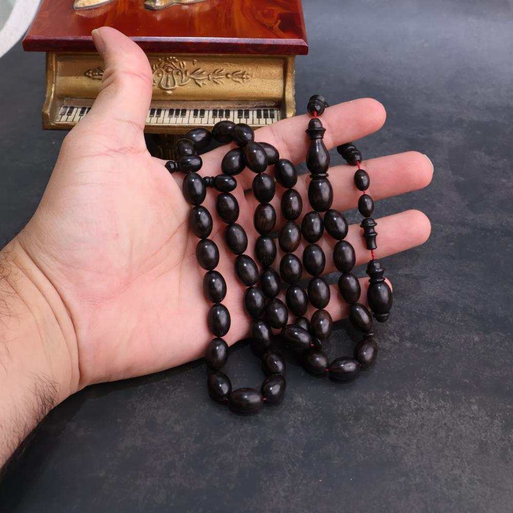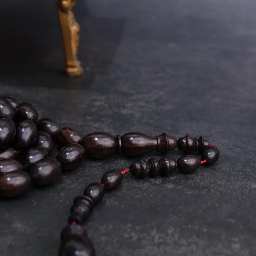 سبحة مميزة من خشب الأبنوس المعروف بجماله وسحر ملمسه الخاص مخروط بحرفية عالية.